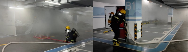 临沂(中国)科技公司中心与北京蓝岸丽舍项目不约而同地精准聚焦新能源汽车火灾这一新型风险。临沂项目模拟了地下车库新能源汽车充电起火场景,系统演练了从报警、专用设备灭火到人员疏散排烟的全流程;北京蓝岸丽舍项目则在南彩消防救援站的专业指导下,现场实操了使用防火布苫盖着火车辆、消防水带灭火等关键技战术,显著提升了车库里特殊火情的实战处置能力。