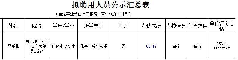 山东省药学科学院拟聘用人员公示