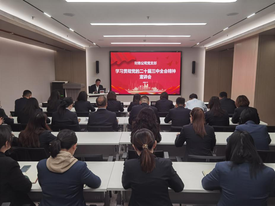 徐峰强调,学习宣传贯彻党的二十届三中全会精神是财务公司当前和今后一个时期的重大政治任务,全体党员干部要继续深入学习、深刻领会全会的核心要义和精神实质,切实增强学习宣传贯彻的政治自觉、思想自觉和行动自觉;要把学习贯彻全会精神同学习领会习近平总书记关于全面深化改革的一系列新思想、新观点、新论断结合起来、贯通起来,准确把握全会赋予金融工作的新任务和新使命,紧密结合财务公司当前中心工作,加强党的领导,坚持党要管党、全面从严治党,巩固党纪学习教育成果,在突出党建引领、强化人才培养、完善公司治理,深化改革创新等方面持续发力,以全面深化改革的新成效为财务公司高质量发展赋能增势。